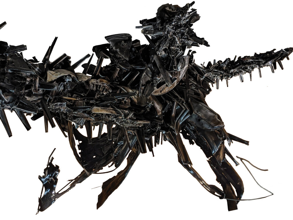 Αλχημικό σύμβολο συνδεδεμένο με τη φωτιά και το χάος, ο δράκος αποτελεί ένα από τα πιο αναγνωρισμένα μυθικά θηρία, άλλοτε εκπροσωπώντας την αίρεση, άλλοτε τη σοφία. Αγέρωχος και επιβλητικός, με εκτυφλωτικό βλέμμα από φανάρια οχημάτων και αεροδυναμικά φτερά από προφυλακτήρες και οστεόδερμα από 1500 πλαστικές καρέκλες. Ο κεντρικός δράκος αποτελεί ένα υβριδικό συνονθύλευμα αντικειμένων που εντόπισε ο καλλιτέχνης σε δρόμους της επαρχίας. Δίνεται η εντύπωση πως το έργο δεν φτιάχτηκε από ανθρώπινο χέρι, αλλά ότι γεννήθηκε σε κάποιο εργοστάσιο. Στην πραγματικότητα ο δράκος αυτός κατασκευάστηκε ασκητικά, στο υπαίθριο εργαστήριο του καλλιτέχνη, υπό τους ήχους των κεραυνών και του καμπαναριού. Η σύνθεση του δράκου ήταν αποτέλεσμα μιας ατέρμονης αναζήτησης στοιχείων. Οι επιφάνειές του ποικίλουν μεταξύ του απείρως λεπτού και του ογκώδους, ενώ η οργανική τους σύνθεση είναι αποτέλεσμα θερμικών συγκολλήσεων. Ο Διώτης, με έναν μοναδικό τρόπο,καταφέρνει να συνδέσει υλικά με τολμηρό ύφος αναδεικνύοντας την πολυπλοκότητα της έννοιας του δράκου μέσα από την οπτική της μεταφορά στον χώρο.  Χαρτογραφώντας την παραδοξότητα του δράκου, ο Διώτης παρουσιάζει παράλληλα σχέδια με μορφές καθοδηγούμενες από τη ροή του μελανιού που ακροβατούν ανάμεσα στηζωολογική πραγματικότητα και τον κόσμο των συμβόλων. Εμπνέεται από εικόνες παρμένες από θρύλους και δημοτικά παραμύθια, στρέφοντας το βλέμμα από το παρελθόν στο μέλλον, αντιμετωπίζοντας τον δράκο σαν μια εξελισσόμενη δύναμη που διαμορφώνει τον πολιτισμό μας. Το ανύπαρκτο του δράκου παρουσιάζεται ως υπαρκτό και θριαμβεύει ενάντια στις αντιλήψεις που τον θέλουν εγκλωβισμένο στον δικό του μύθο».