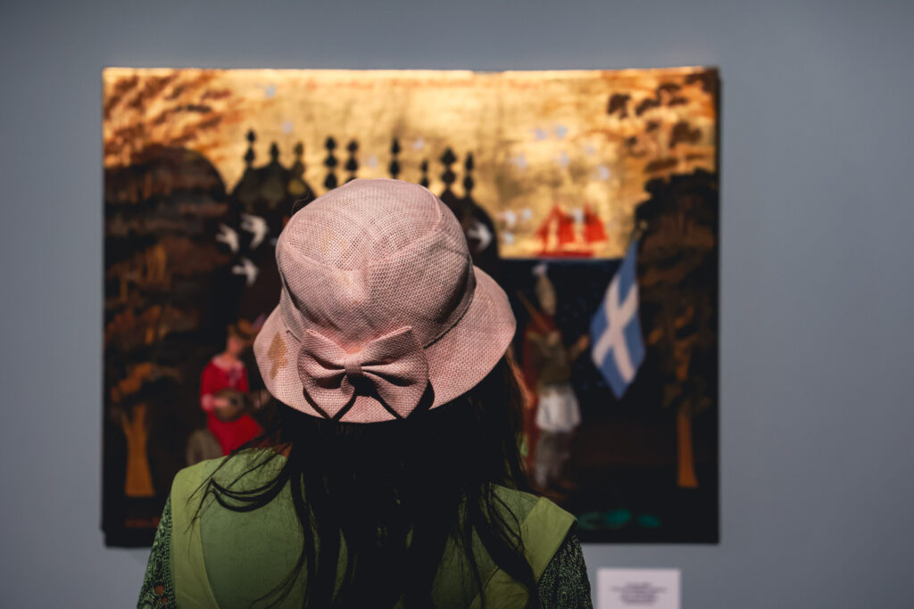 Μετά την εξαιρετικά επιτυχημένη της πορεία στον Βόλο και τη Μυτιλήνη κατά τη διάρκεια της περασμένης χρονιάς, η έκθεση «απ’ τη μεριά των σοφών και των τρελών»: Αφιέρωμα στον Θεόφιλο Χατζημιχαήλ»,παρουσιάζεται στο Κέντρο Πολιτισμού «ΕΛΛΗΝΙΚΟΣ ΚΟΣΜΟΣ» έως τις 7 Μαρτίου 2022. Την επιμέλεια της έκθεσης έχει αναλάβει η ιστορικός τέχνης και ανεξάρτητη επιμελήτρια Ίρις Κρητικού. H έκθεση συνδιοργανώνεται από το Ίδρυμα Μείζονος Ελληνισμού, το Λύκειο των Ελληνίδων / Παράρτημα Βόλου, που είχε και την αρχική παραγωγή της, και το Μουσείο Tériade – Βιβλιοθήκη Στρατή Ελευθεριάδητης Μυτιλήνης.