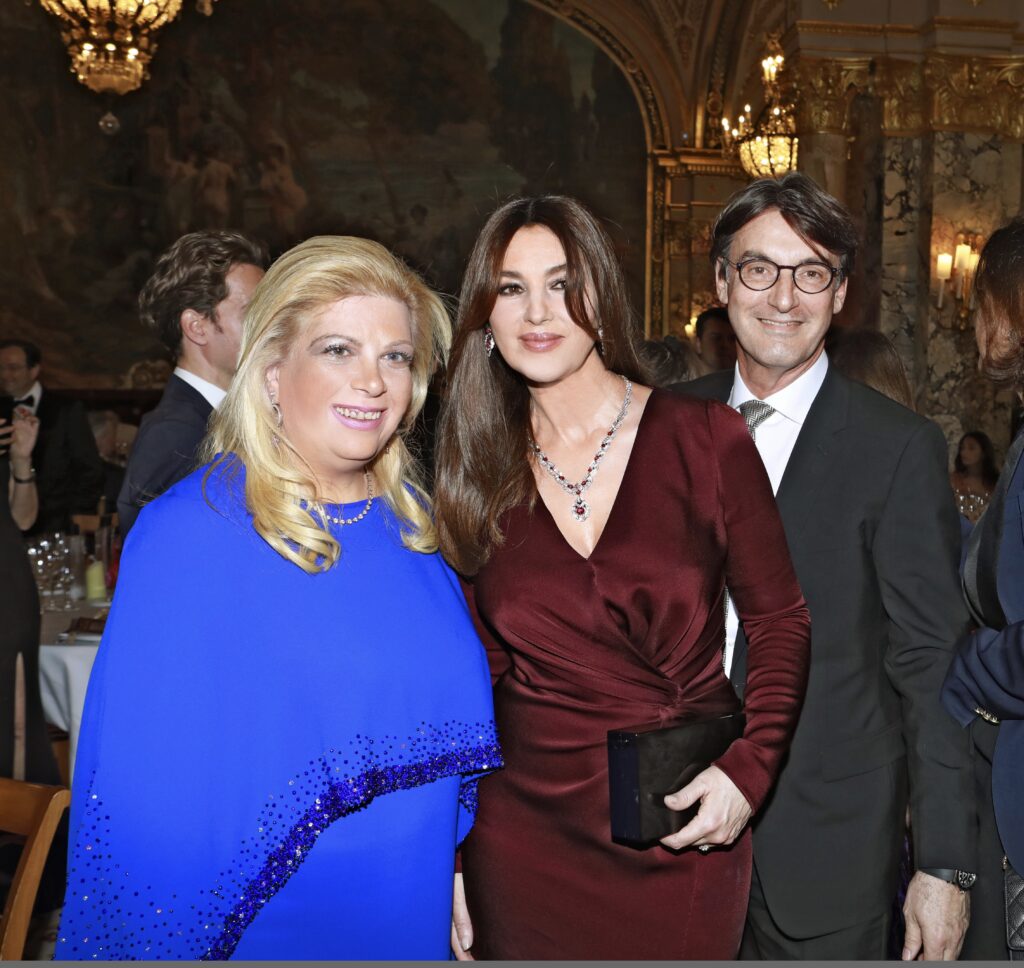 Η Κλέλια Χατζηιωάννου στη βράβευσή της πριν λίγες μέρες στο Μονακό, με την Μόνικα Μπελούτσι και τον σύζυγό της Κωνσταντίνο Σκορίλα