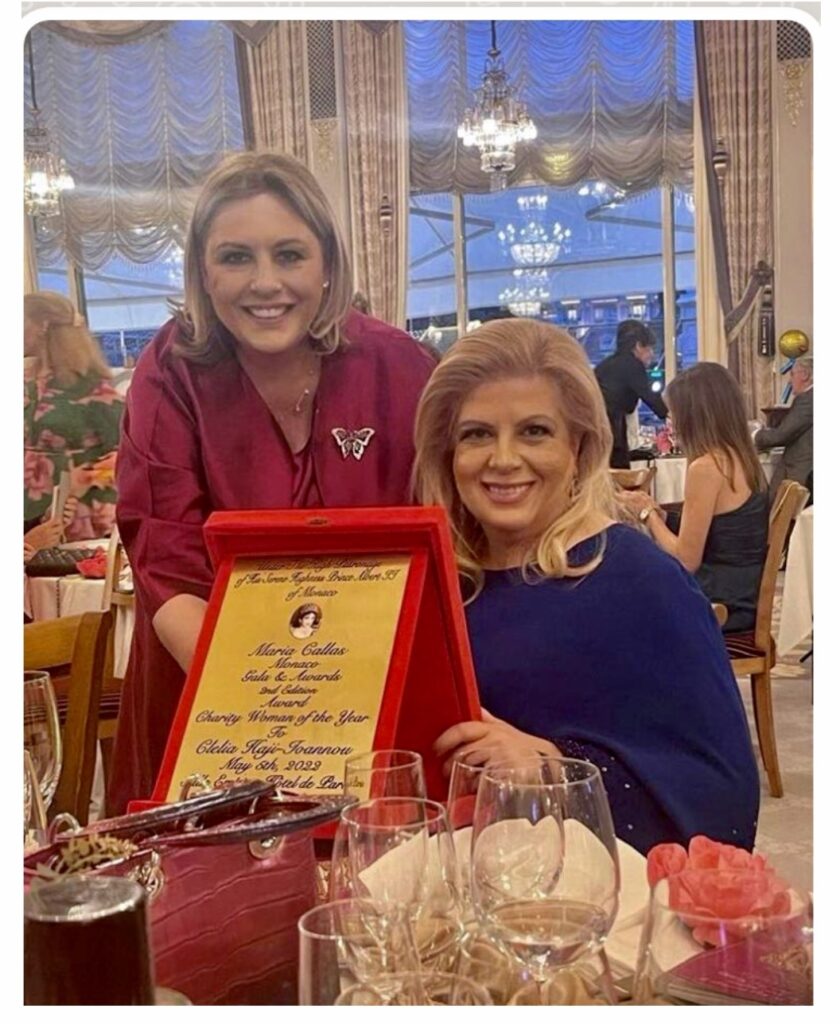 Η Κλέλια Χατζηιωάννου που βραβεύτηκε πριν λίγες μέρες στο Μονακό ως «Φιλάνθρωπη Γυναίκα της χρονιάς», παραλαμβάνοντας το βραβείο της, με τις στενές φίλες της Κατερίνα Λαναρά και Ντόρα Πάλλη