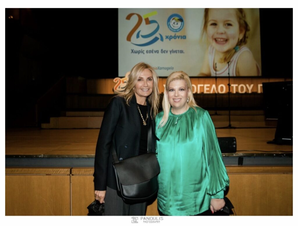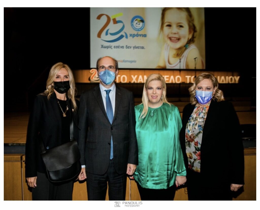 Η Κλέλια Χατζηιωάννου κατά την βράβευσή της από το «ΧΑΜΟΓΕΛΟ ΤΟΥ ΠΑΙΔΙΟΥ», με την Πρόεδρο της Δημοκρατίας Αικατερίνη Σακελαρροπούλου, τον Πρόεδρο του σωματείου κ.Κώστα Γιαννόπουλο, την Μαρέβα Μητσοτάκη, τον Υπουργό Κωστή Χατζηδάκη και την επιστήθια φίλη της και κουμπάρα της Ντόρα Πάλλη!