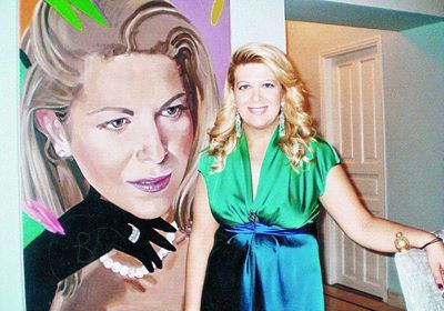 Στο εσωτερικό του υπάρχουν πανάκριβα έπιπλα, σπάνια έργα τέχνης, πορτρέτα της Γκρέης Κέλλυ και τηs ιδιοκτήτριας, που εχει ζωγραφίσει ο γνωστός ζωγράφος Χάρηs Λαμπερτ, ένας πανάκριβος πίνακας του Πικάσο, πίνακες του Φασιανού, του Τσαρούχη ,του Εγγονόπουλου και του Μυταρά και ανεκτίμητα γλυπτά πάνω στο τζάκι του Νταλί και του Ροντε.