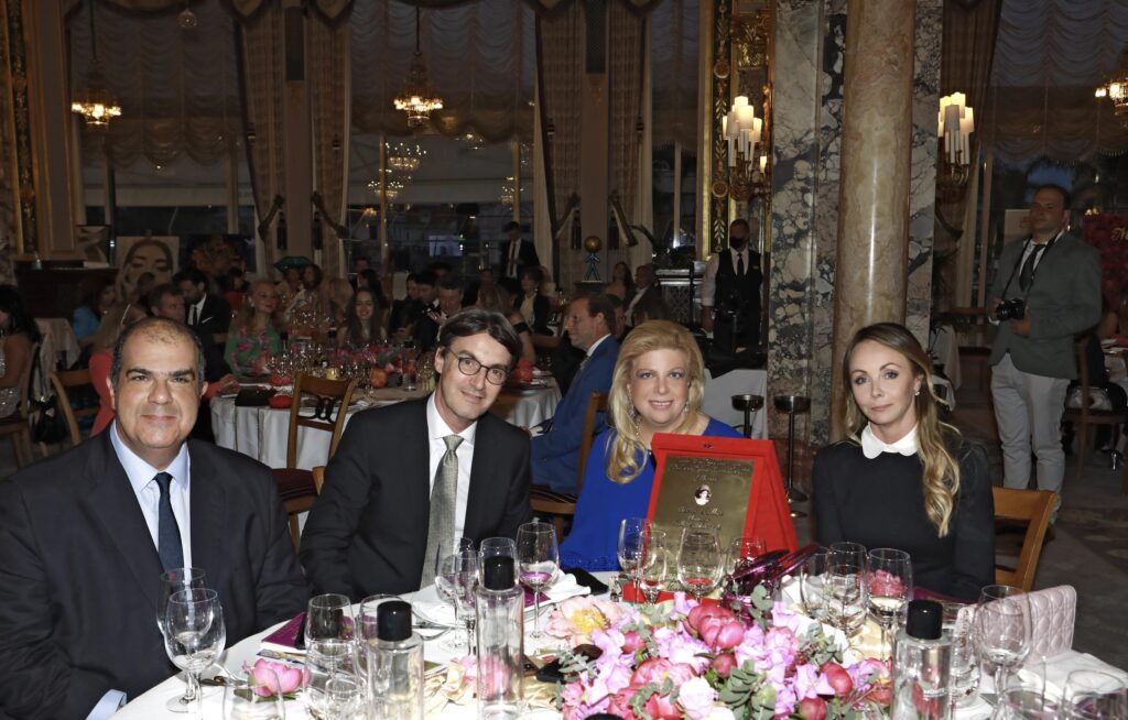 Η Κλέλια Χατζηιωάννου στη βράβευσή της πριν λίγες μέρες στο Μονακό, ανάμεσα στον αδερφό της sir Στέλιο Χατζηιωάννου, τον σύζυγό της Κωνσταντίνο Σκορίλα και την Όρλα Χατζηιωάννου