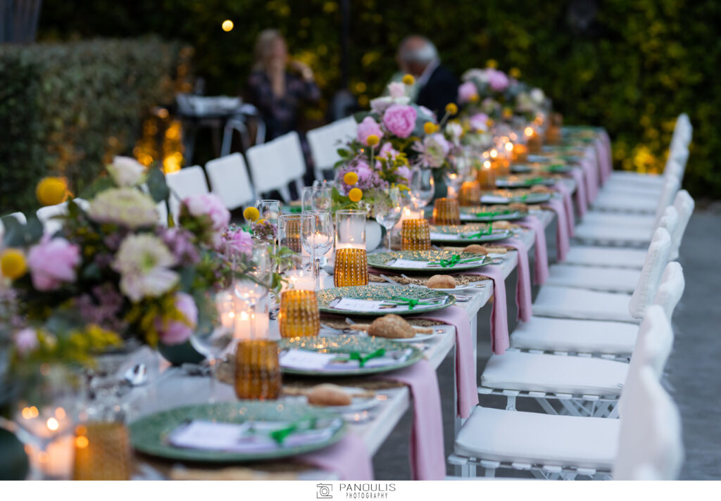 Η Brandy Butter –η εταιρεία που ήταν υπεύθυνη για την επιτυχημένη βραδιά– δημιούργησε ένα μακρύ τραπέζι  -κάτω από μια διάφανη σκηνή- με κεριά και ροζ λουλούδια εμπνευσμένα από το σχέδιο των χαλιών της Μαίρης Κατράτζου.